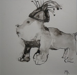 - Tentoonstelling van keramiek beesten en tekeningen in o.i.inkt